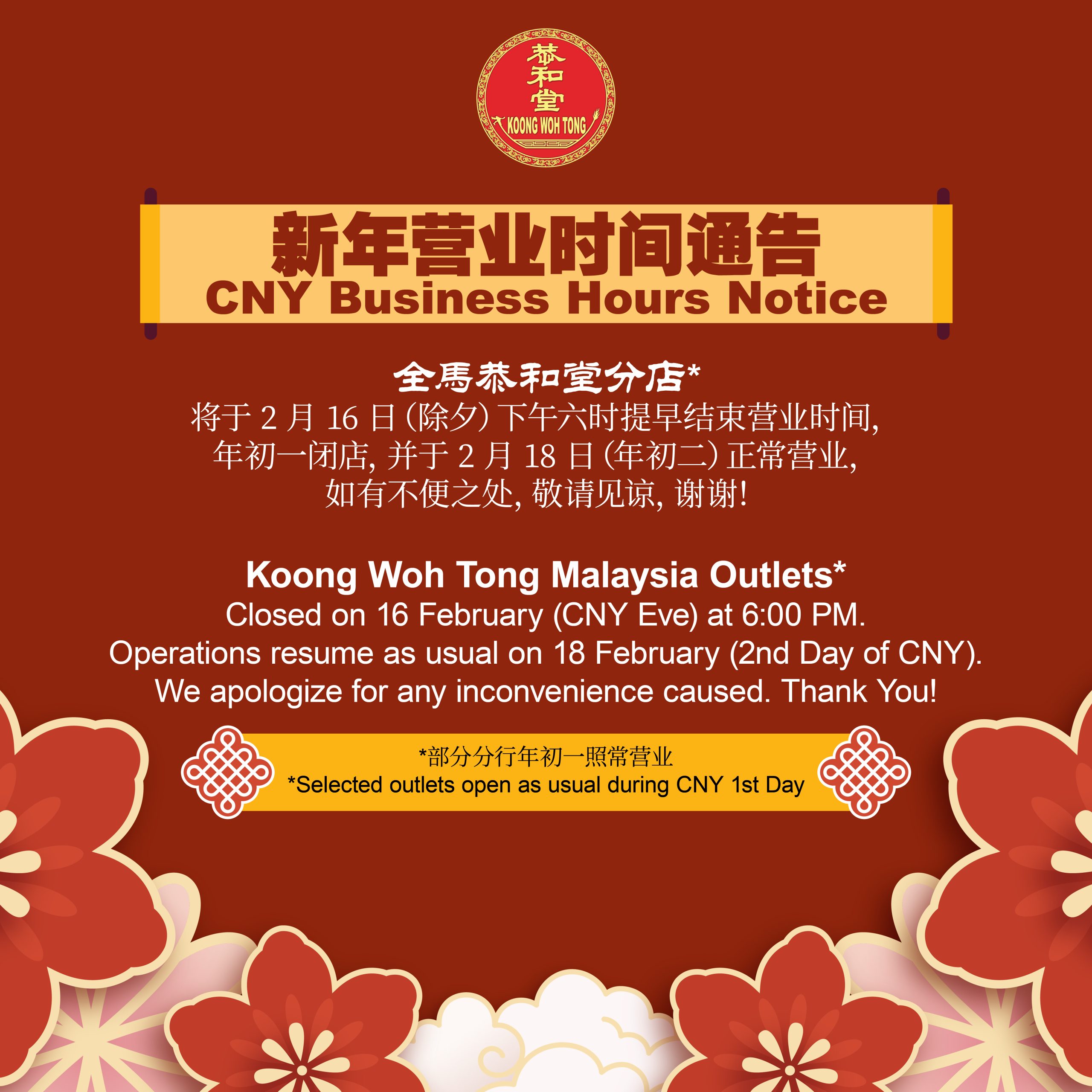 • Johor Bahru KSL City Mall outlet will close at 5:00 PM.